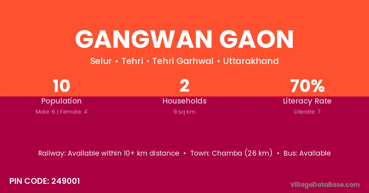 According to Census 2011 information, the village code of Gangwan Gaon village is 249001.