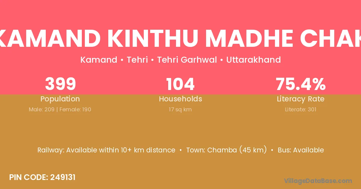 Kamand Kinthu Madhe Chak village has a total population of 399 people, of which 209 are males and 190 are females.