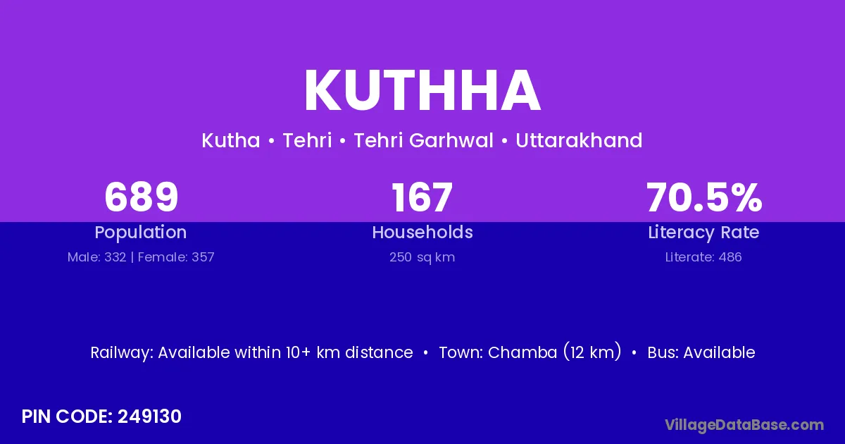 According to Census 2011 information, the village code of Kuthha village is 249130.