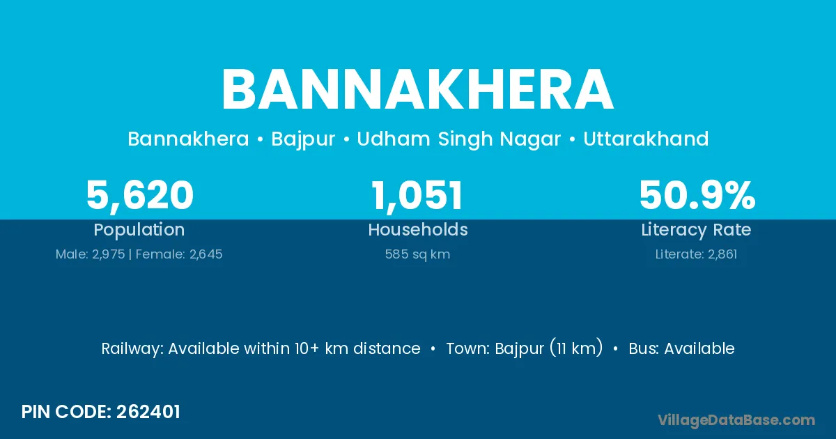 Bajpur (11 km) is the nearest town to Bannakhera village for major economic activities and is located approximately 11 km away.
