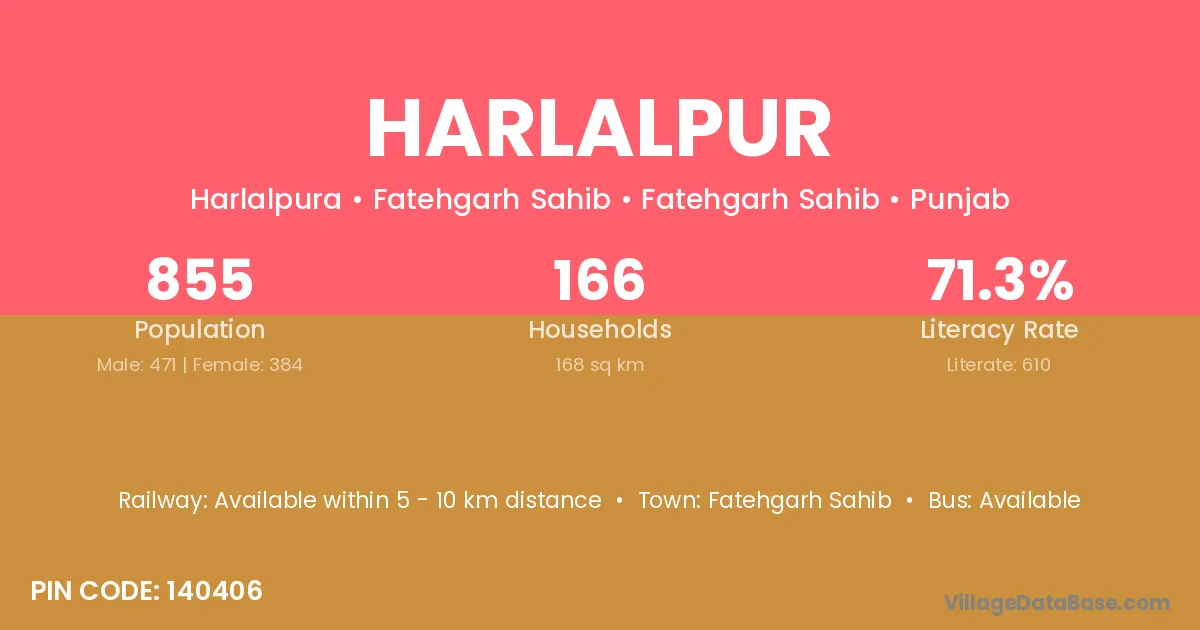 According to Census 2011 information, the village code of Harlalpur village is 262401.