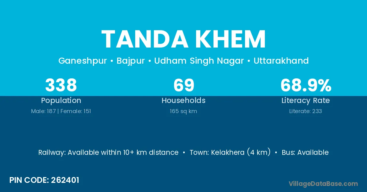 Kelakhera (4 km) is the nearest town to Tanda Khem village for major economic activities and is located approximately 4 km away.
