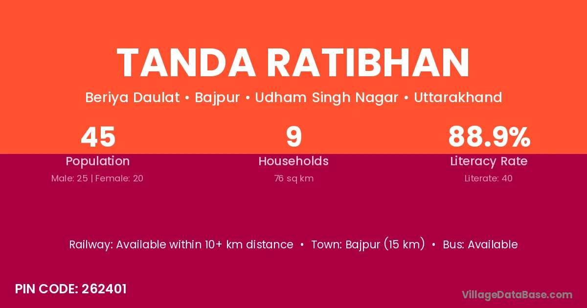 Tanda Ratibhan village has a total population of 45 people, of which 25 are males and 20 are females.