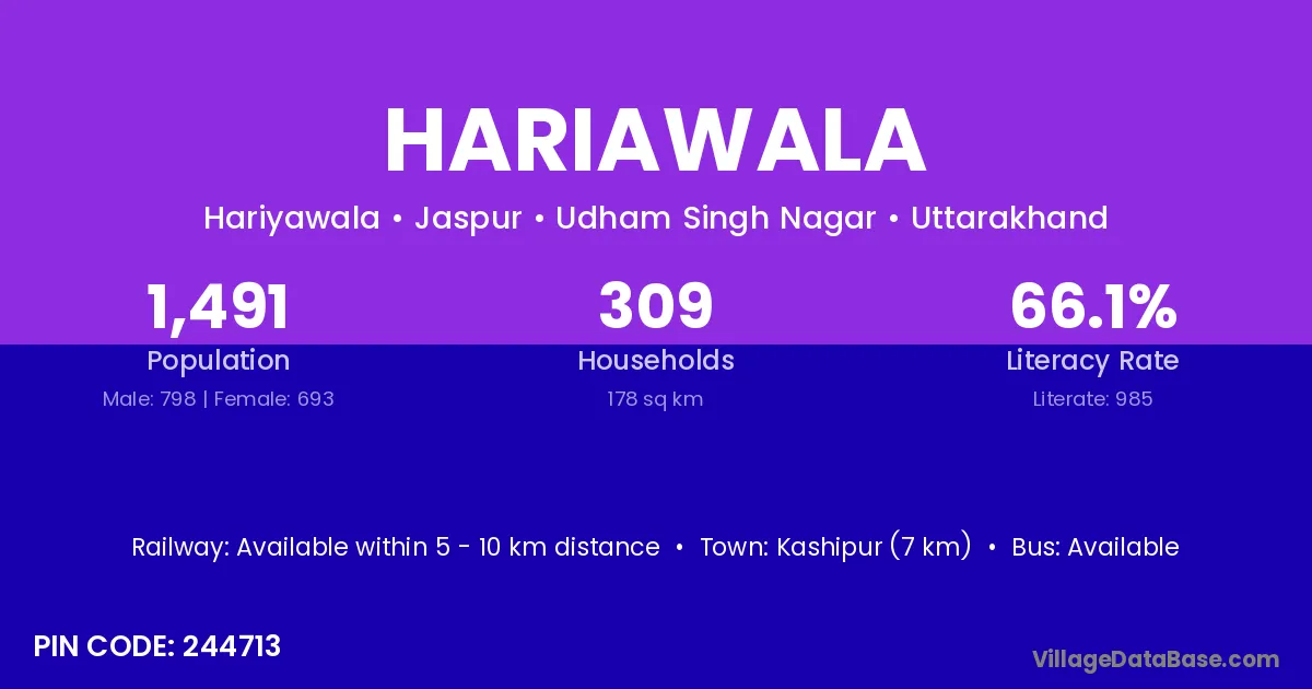 Kashipur (7 km) is the nearest town to Hariawala village for major economic activities and is located approximately 7 km away.