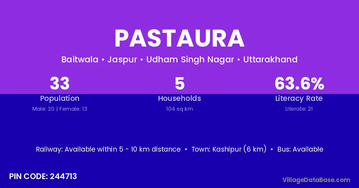 According to Census 2011 information, the village code of Pastaura village is 244713.