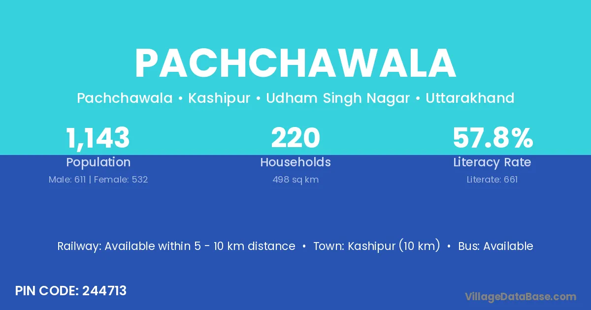 Kashipur (10 km) is the nearest town to Pachchawala village for major economic activities and is located approximately 10 km away.