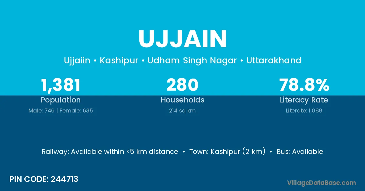 Kashipur (2 km) is the nearest town to Ujjain village for major economic activities and is located approximately 2 km away.