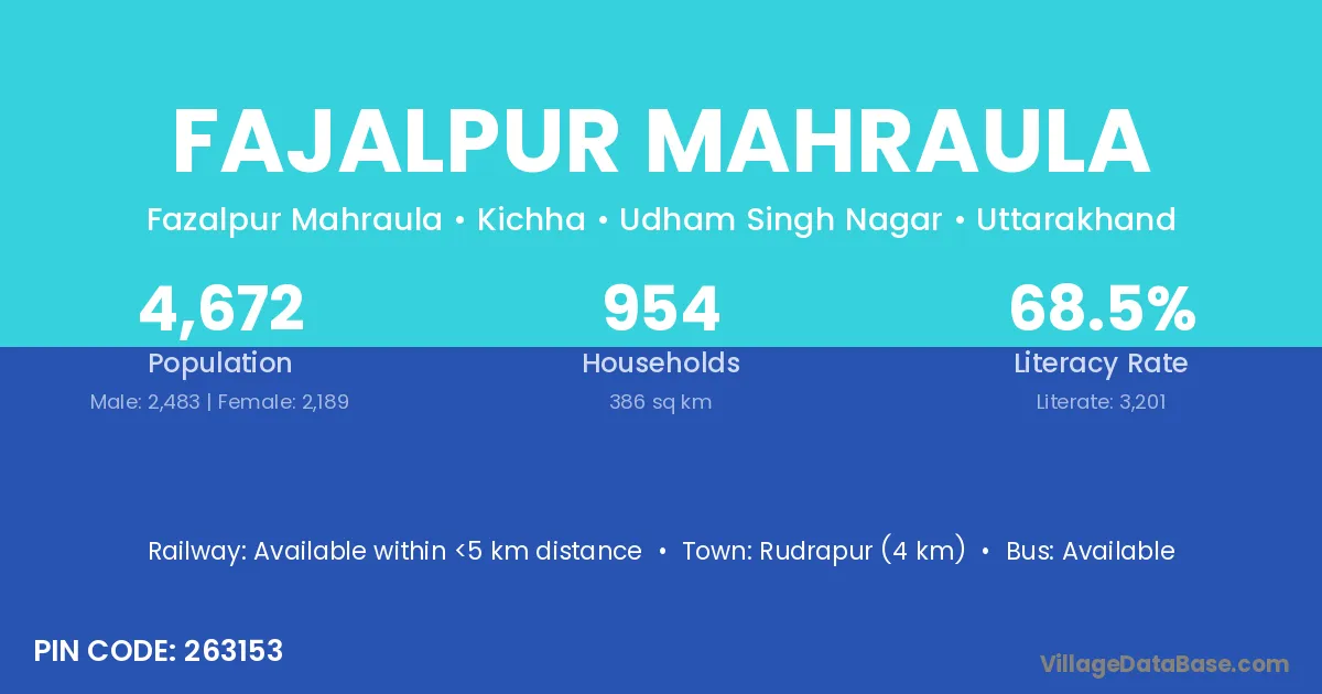Rudrapur (4 km) is the nearest town to Fajalpur Mahraula village for major economic activities and is located approximately 4 km away.
