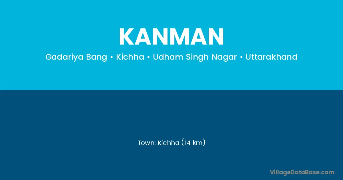 Kichha (14 km) is the nearest town to Kanman village for major economic activities and is located approximately 14 km away.