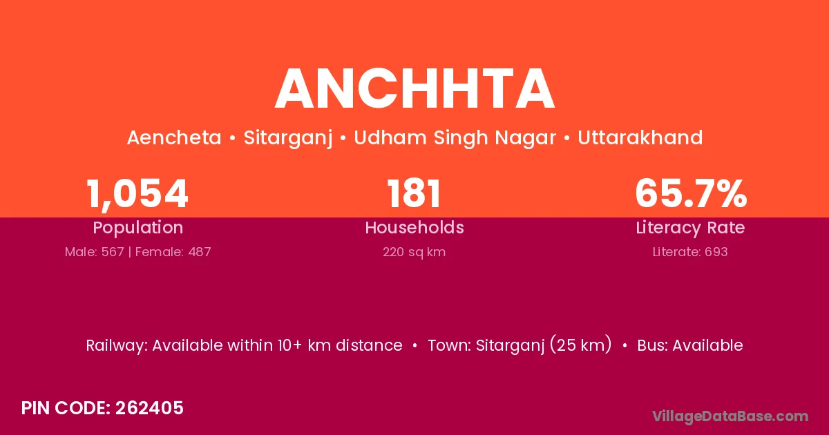 Sitarganj (25 km) is the nearest town to Anchhta village for major economic activities and is located approximately 25 km away.