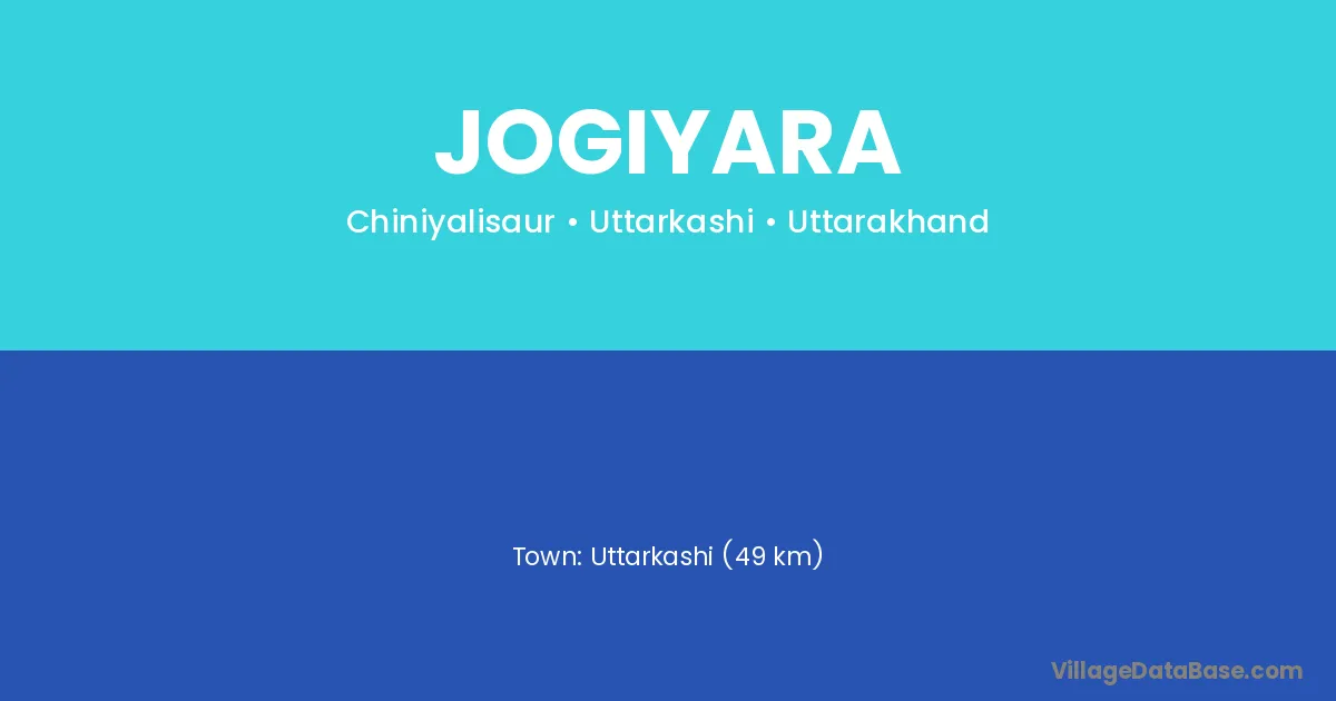 Uttarkashi (49 km) is the nearest town to Jogiyara village for major economic activities and is located approximately 49 km away.