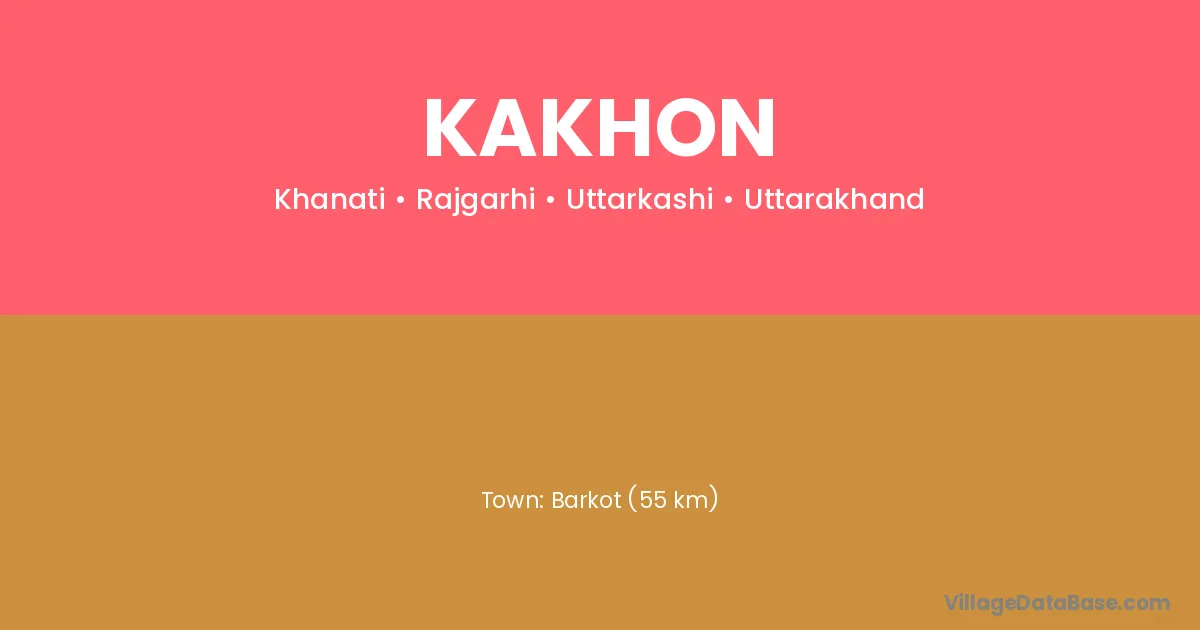Barkot (55 km) is the nearest town to Kakhon village for major economic activities and is located approximately 55 km away.