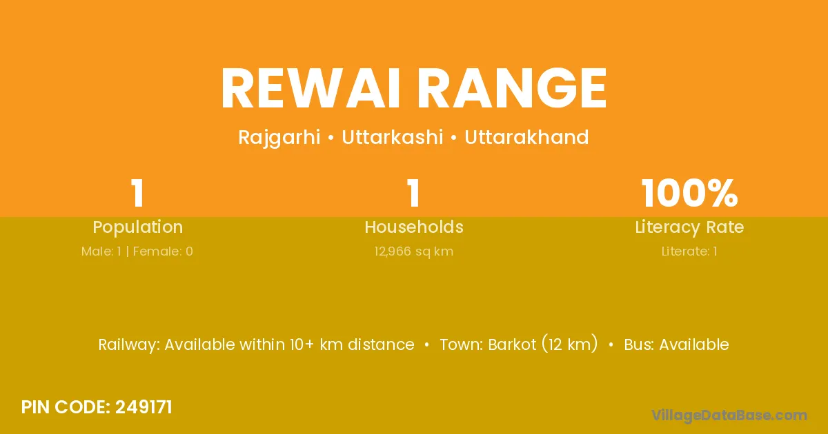 Barkot (12 km) is the nearest town to Rewai Range village for major economic activities and is located approximately 12 km away.