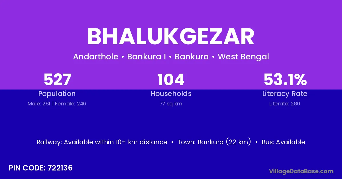 Bankura (22 km) is the nearest town to Bhalukgezar village for major economic activities and is located approximately 22 km away.