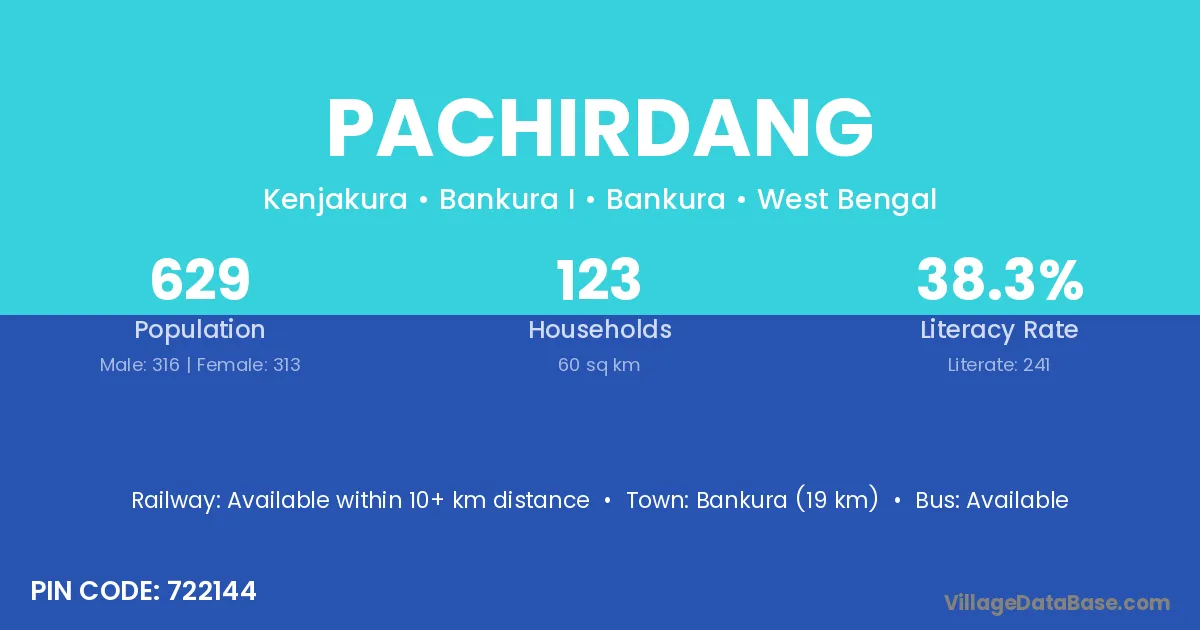 Bankura (19 km) is the nearest town to Pachirdang village for major economic activities and is located approximately 19 km away.