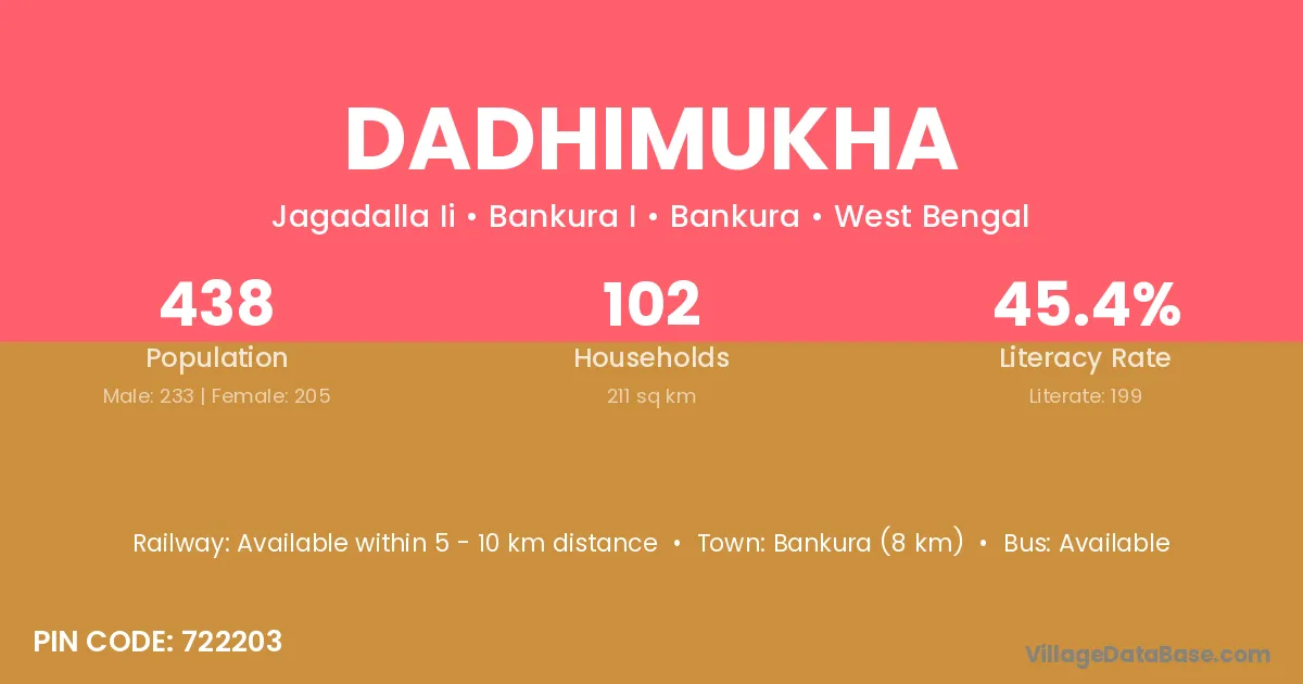 Durgapur (22 km) is the nearest town to Dadhimukha village for major economic activities and is located approximately 22 km away.