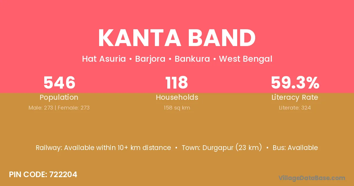 Durgapur (23 km) is the nearest town to Kanta Band village for major economic activities and is located approximately 23 km away.