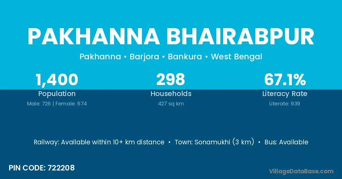 Sonamukhi (3 km) is the nearest town to Pakhanna Bhairabpur village for major economic activities and is located approximately 3 km away.