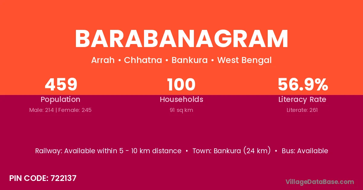 Bankura (24 km) is the nearest town to Barabanagram village for major economic activities and is located approximately 24 km away.