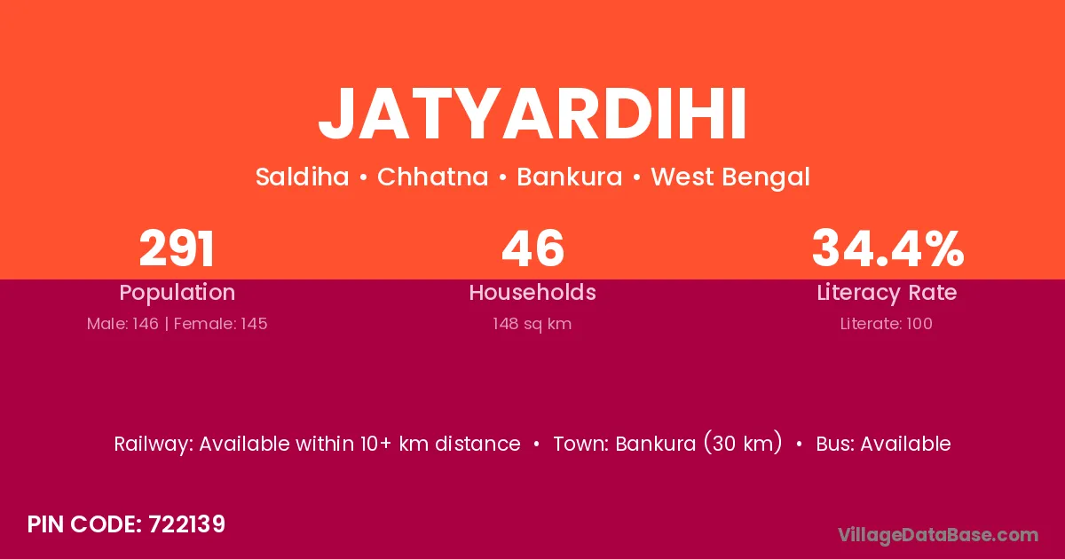 Bankura (30 km) is the nearest town to Jatyardihi village for major economic activities and is located approximately 30 km away.