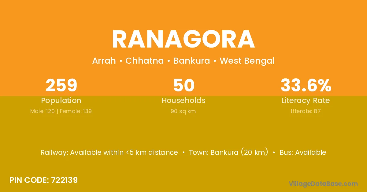 Bankura (20 km) is the nearest town to Ranagora village for major economic activities and is located approximately 20 km away.