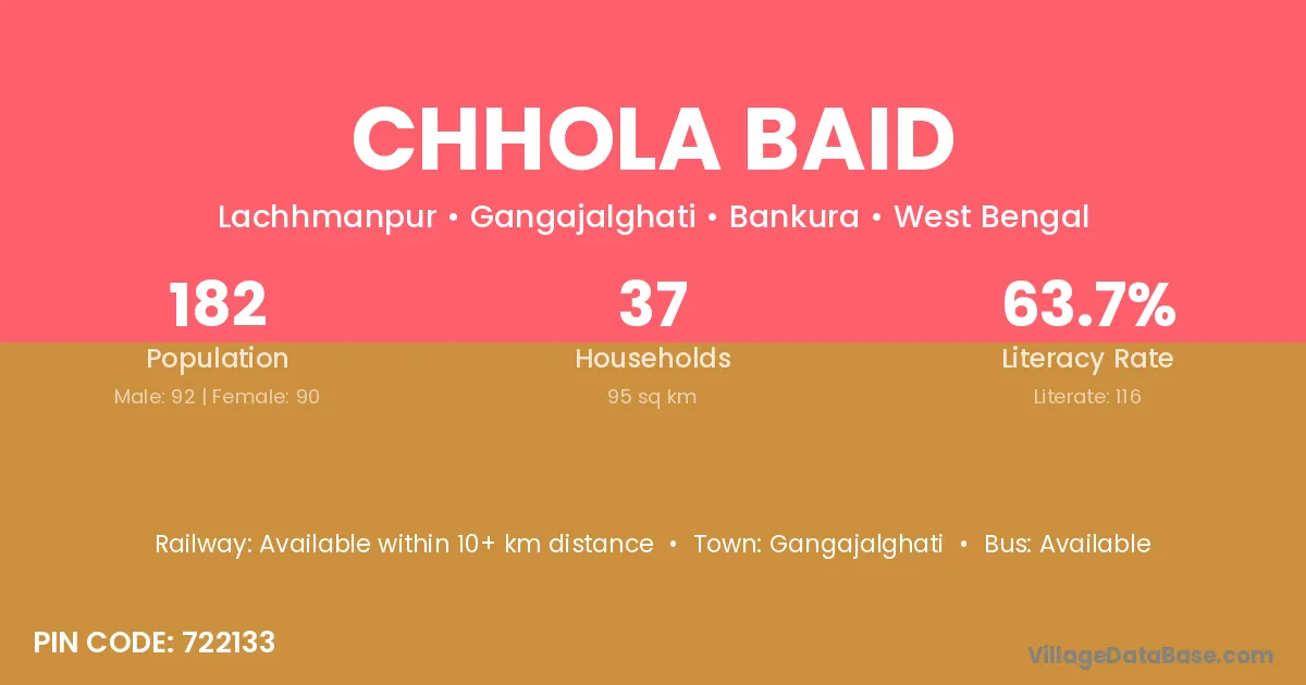 Gangajalghati is the nearest town to Chhola Baid village for major economic activities