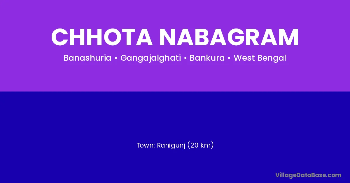 Ranigunj (20 km) is the nearest town to Chhota Nabagram village for major economic activities and is located approximately 20 km away.