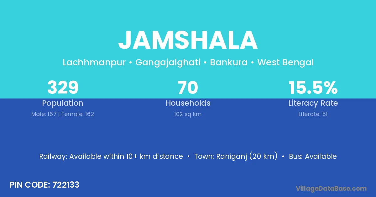 Raniganj (20 km) is the nearest town to Jamshala village for major economic activities and is located approximately 20 km away.
