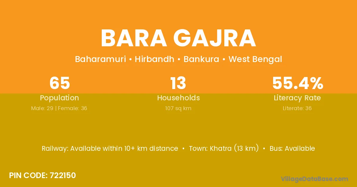 Khatra (13 km) is the nearest town to Bara Gajra village for major economic activities and is located approximately 13 km away.