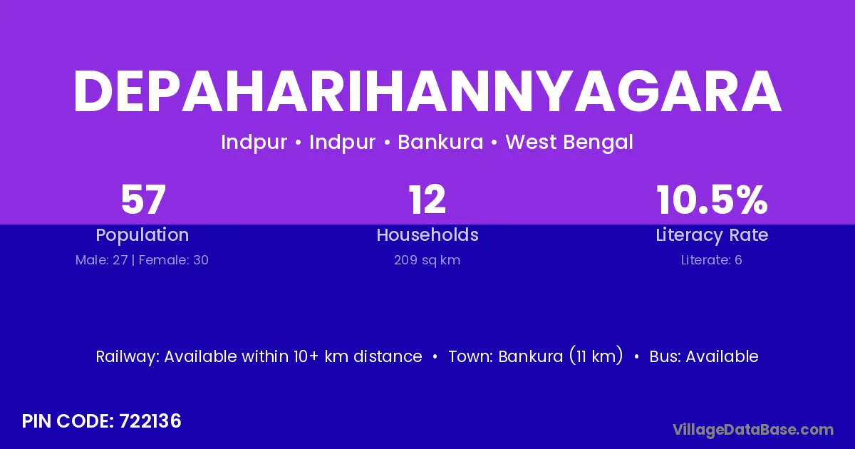 Bankura (11 km) is the nearest town to Depaharihannyagara village for major economic activities and is located approximately 11 km away.