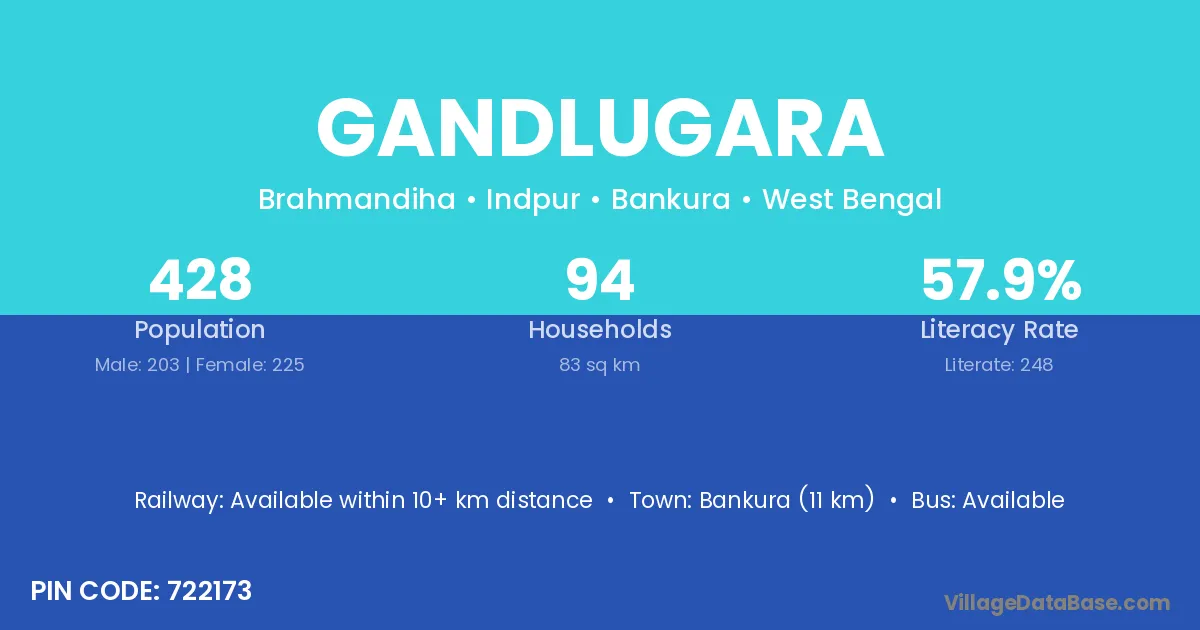 Bankura (11 km) is the nearest town to Gandlugara village for major economic activities and is located approximately 11 km away.