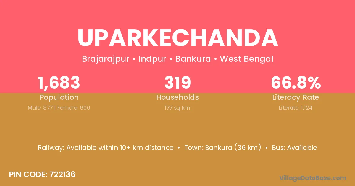 Bankura (36 km) is the nearest town to Uparkechanda village for major economic activities and is located approximately 36 km away.