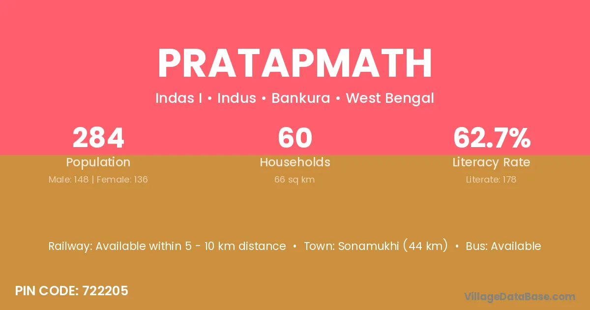 Sonamukhi (44 km) is the nearest town to Pratapmath village for major economic activities and is located approximately 44 km away.