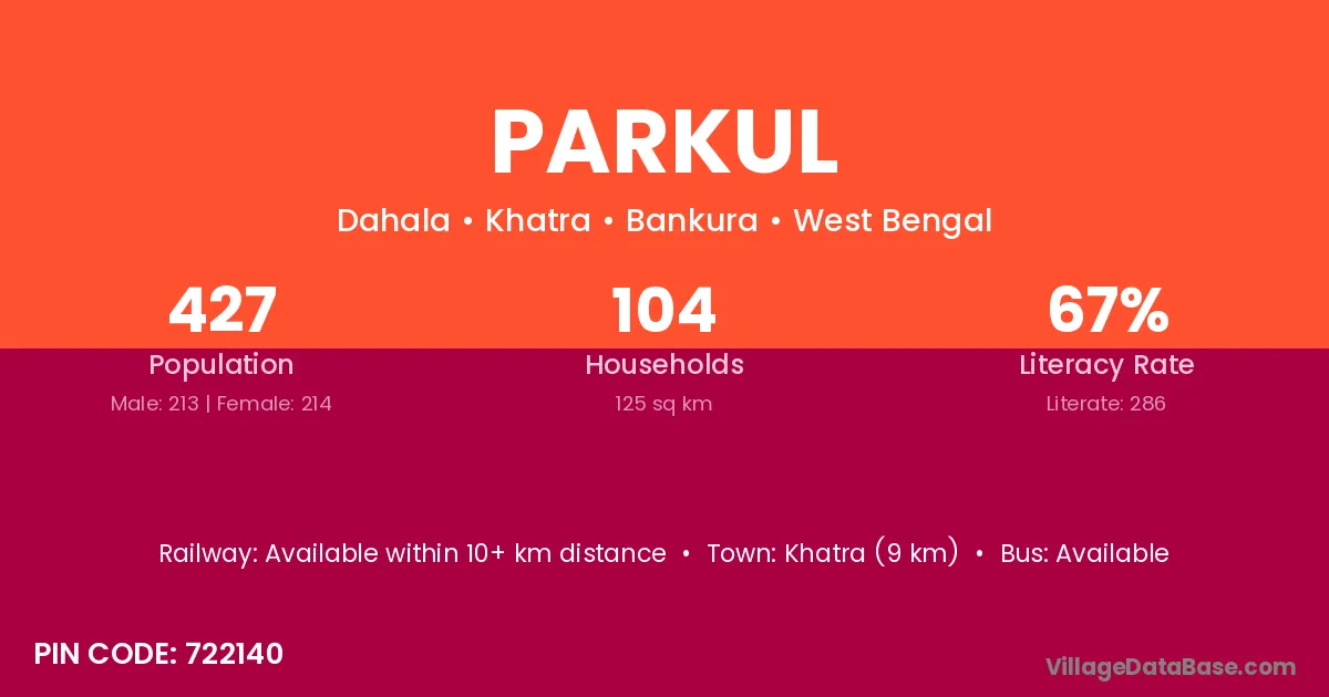 Khatra (9 km) is the nearest town to Parkul village for major economic activities and is located approximately 9 km away.