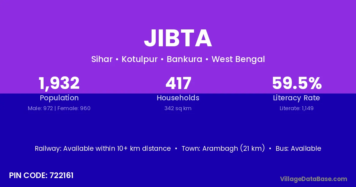 Arambagh (21 km) is the nearest town to Jibta village for major economic activities and is located approximately 21 km away.