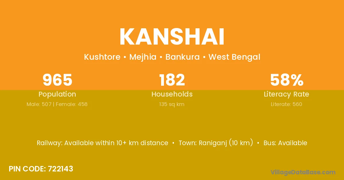 Raniganj (10 km) is the nearest town to Kanshai village for major economic activities and is located approximately 10 km away.