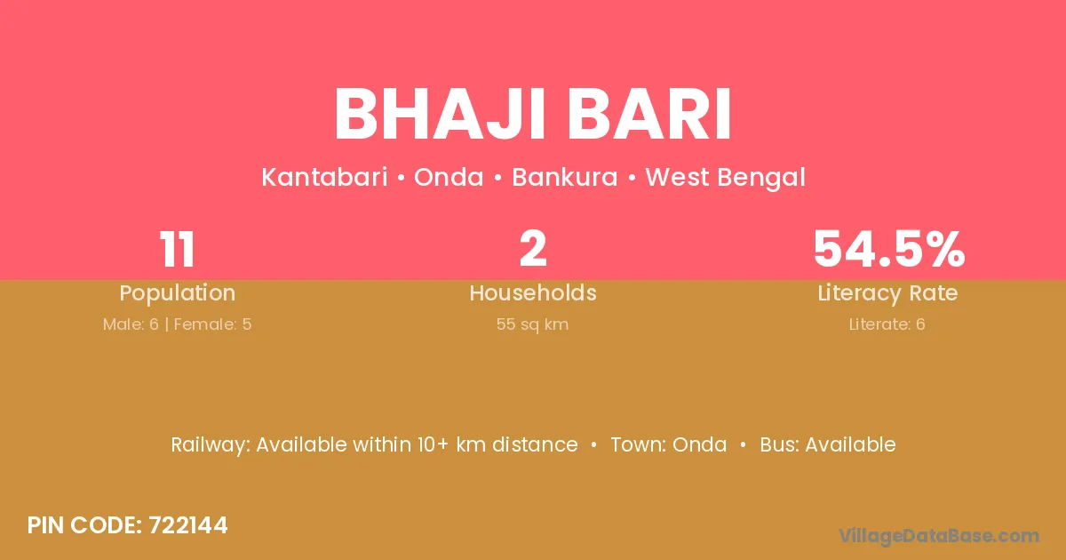 Bhaji Bari village has a total population of 11 people, of which 6 are males and 5 are females.