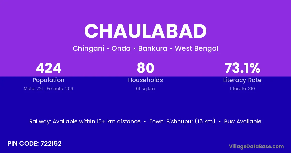 Bishnupur (15 km) is the nearest town to Chaulabad village for major economic activities and is located approximately 15 km away.