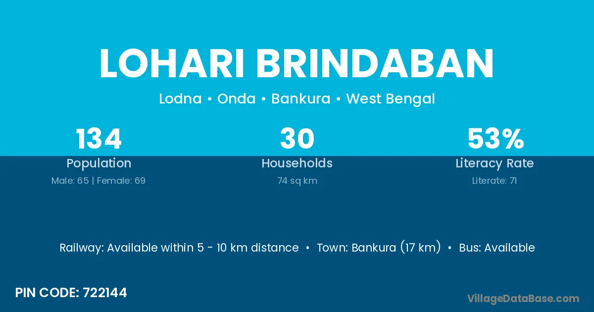 Bankura (17 km) is the nearest town to Lohari Brindaban village for major economic activities and is located approximately 17 km away.