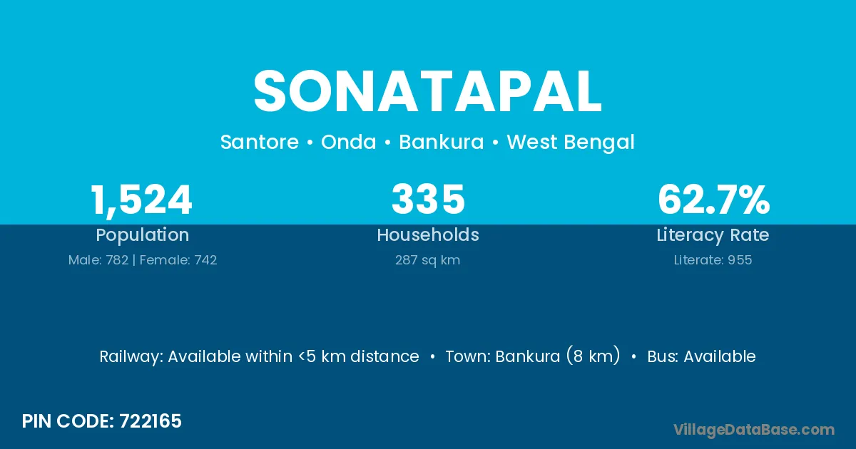 Bankura (8 km) is the nearest town to Sonatapal village for major economic activities and is located approximately 8 km away.