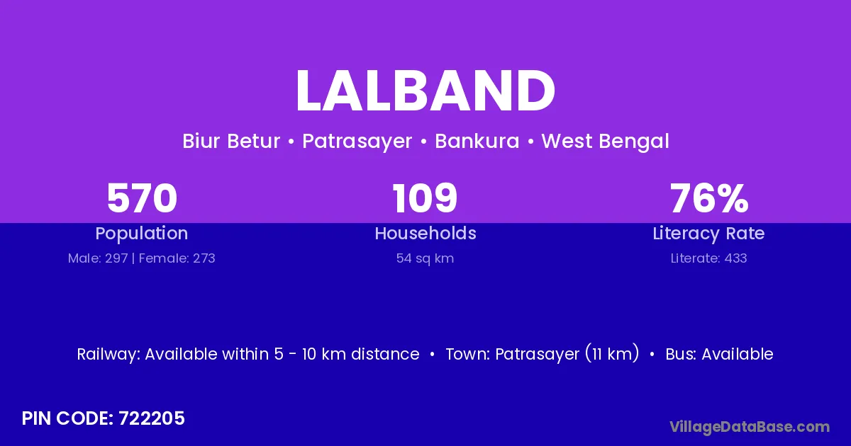 According to Census 2011 information, the village code of Lalband village is 722205.
