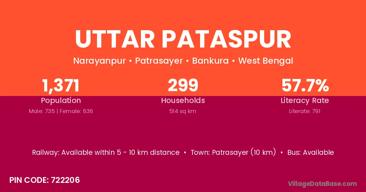 Patrasayer (10 km) is the nearest town to Uttar Pataspur village for major economic activities and is located approximately 10 km away.
