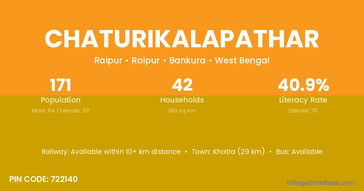 Khatra (29 km) is the nearest town to Chaturikalapathar village for major economic activities and is located approximately 29 km away.