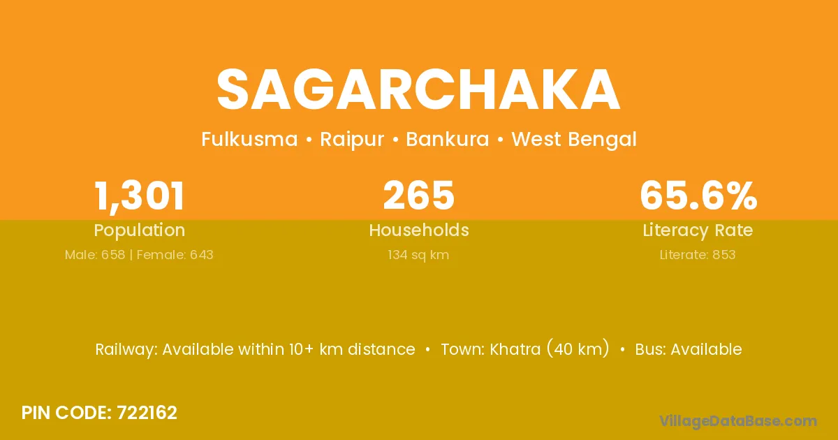 Khatra (40 km) is the nearest town to Sagarchaka village for major economic activities and is located approximately 40 km away.
