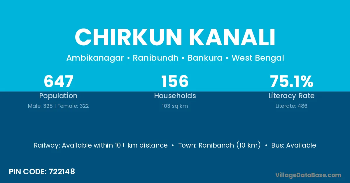 Chirkun Kanali village is located in the Ranibundh Subdivision of the Bankura district in West Bengal .
