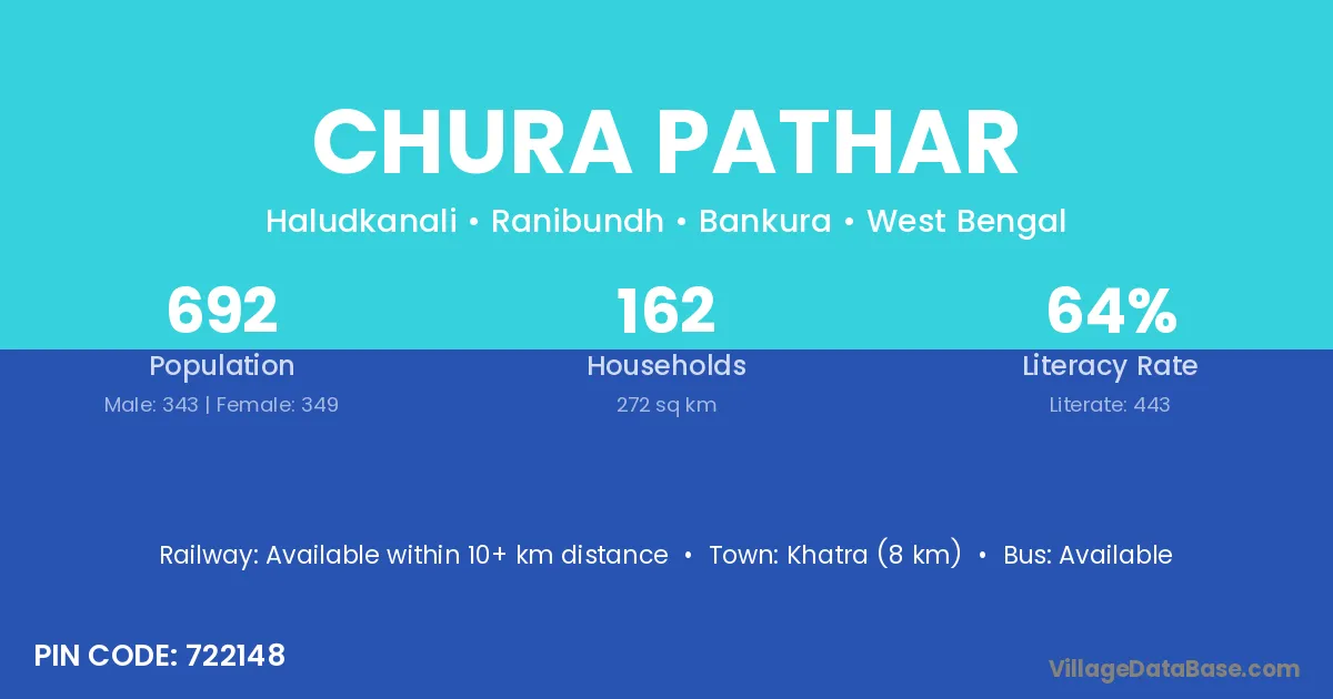 Khatra (8 km) is the nearest town to Chura Pathar village for major economic activities and is located approximately 8 km away.