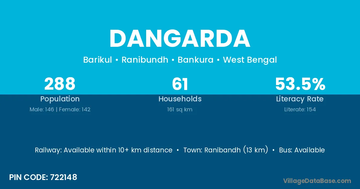 According to Census 2011 information, the village code of Dangarda village is 722148.