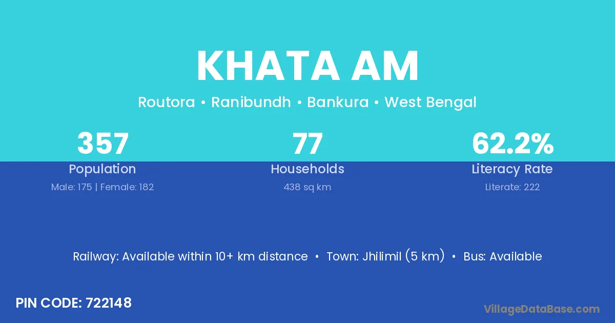 Jhilimil (5 km) is the nearest town to Khata Am village for major economic activities and is located approximately 5 km away.