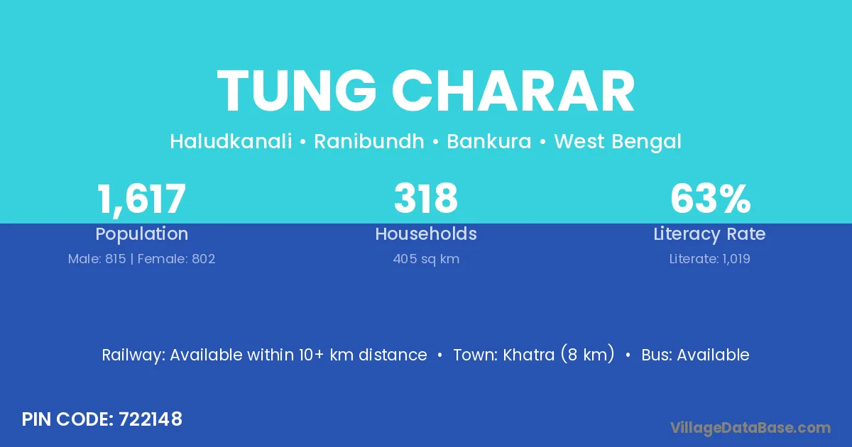 Khatra (8 km) is the nearest town to Tung Charar village for major economic activities and is located approximately 8 km away.