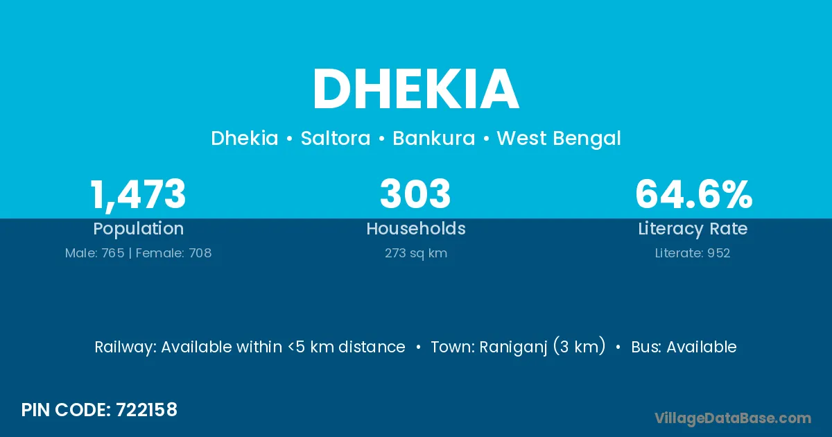 Raniganj (3 km) is the nearest town to Dhekia village for major economic activities and is located approximately 3 km away.